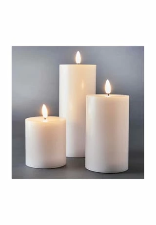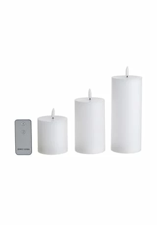 Auf brennende Kerzen sollte man immer ein wachsames Auge haben. Entspannter geht`s mit dekorativen Nordic Light LED-Kerzen (3er Set, unterschiedliche Größen): Ohne offene Flamme flackern sie dauerhaft schön – auch bei Zugluft und dort, wo Sie keine echten Kerzen anzünden können. Einfach die batteriebetriebenen LED Kerzen mit der Fernbedienung einschalten – und schon genießen Sie den stimmungsvollen Kerzenschein-Effekt.
