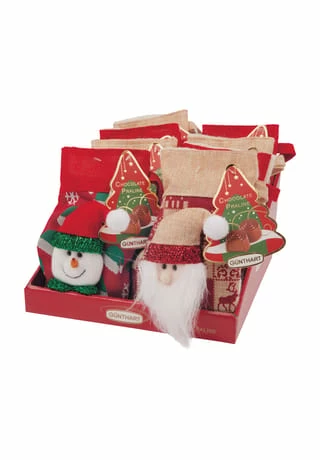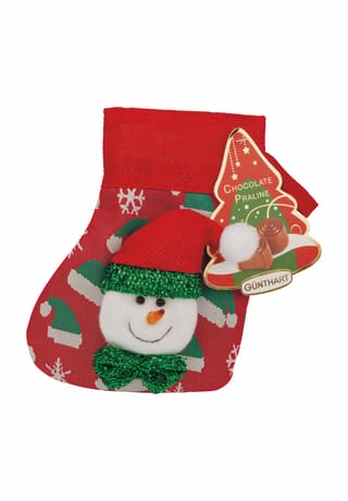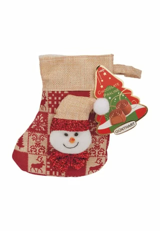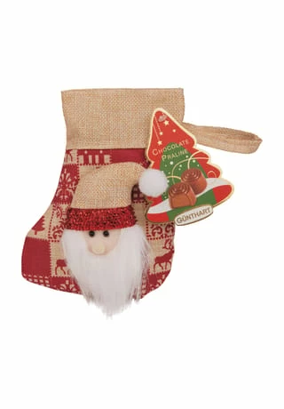 Jute Socke gefüllt mit leckeren Pralinen aus Vollmilchschokolade und Milchcreme