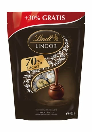 extra dunkle Lindor-Kugeln mit 70% Kakaogehalt, einzeln verpackt