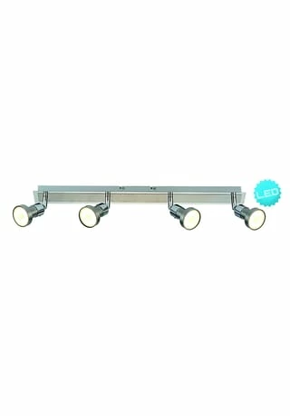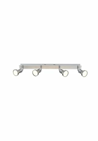 4x GU10 max. 10W je Spot Inkl. 4x GU10 LED (Artikel-Nr.: 4106426) Total: 20 W / 1684 lm Je Lampe: 5 W / 421 lm 3022 K / 20000 h n: 12500x Ra>80 220-240 V~ / 50Hz Maße: L: 570 mm / B: 60 mm / T: 150 mm Material: Metall Farbe: chrom, stahl-blank