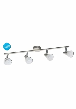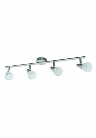 SK I; IP 20; 230V~ 50Hz incl. Leuchtmittel 3000K; 880lm, G9, 4x 2,5W Energieeffizienzklasse A++ Spot: l:5,5cm; d:6,4cm Gesamt:l:67,5cm;b;8cm; h: 14cm Material:Metall. Glas Farbe Gestell: stahl satiniert