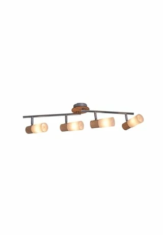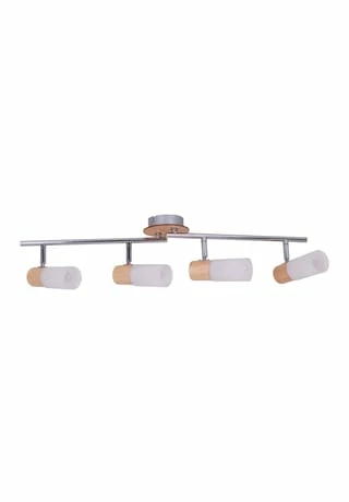 4x E14 max. 5W Exkl. Leuchtmittel IP20 / SKI 220 – 240 V~ / 50 Hz Fassungsteil ca.: D: 4,5 cm / L: 5 cm Spot ca.: D: 5 cm / L: 8,7 cm Gesamt ca.: L: 13,7 cm Stange ca.: D: 1,27 cm / L: 60 cm Deckenplatte ca.: D: 10 cm / H: 2,5 cm Material: Kunststoff/ MDF/ Holz/ Metall Holzart: Gummibaum Farbe: weiß / natur