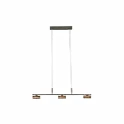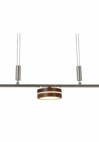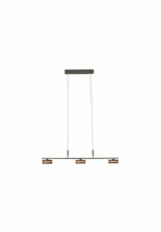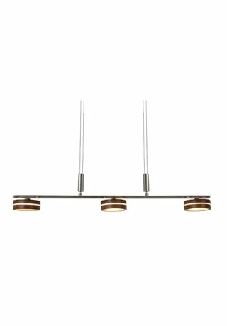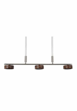 incl 3 LED total 21W 3000K; 810lm; 20.000h Energieeffizienzklasse G IP20/SKII incl. Treiber 220-240V~ 50/60Hz 30-42V DC 500mA dimmbar mit Wanddimmer Typ L,C b: 75cm; t: 10cm; H: verstellbar 80-150cm; Material: Metall, Holz Holzart: Eiche Herkunftsland: Thailand Farbe: braun, satiniert Lichtfarbe: warmweiß