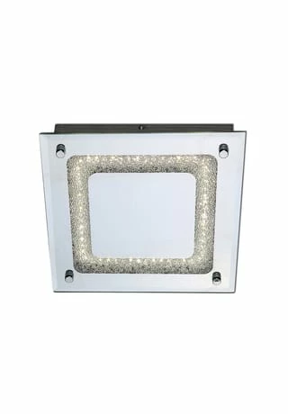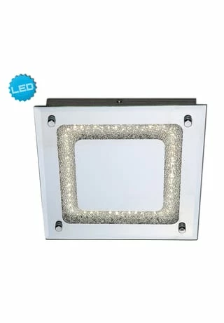 incl. 1 LED Platte Typ SMD 2835 3065K 1355lm total 10,8W IP20; SK II Energieeffizienzklasse: E nicht dimmbar incl. Treiber 220-240V~ 50/60Hz 25-42V DC I=300mA Maße: s: 24cm h: 6cm Material: Spiegel mit Kristallen, Eisen Farbe: chrome Lichtfarbe: warmweiß