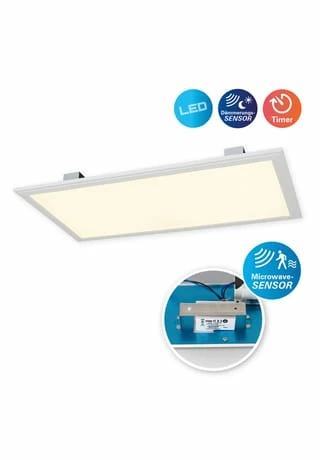 incl. 120x LED SMD 4014/total 24W 3000K, 1900lm; PF>0,9 220-240V~ 50/60Hz Energieeffizienzklasse A Lebensd.:LED bis zu 20.000h incl. Microwave-Sensor: Erfassungswinkel: 360° Reichweite: bis 6m (einstellbar 50%/100%) incl. Dämmerungssensor (< 25lm) incl. Timer-Funktion: 5sek./1min./3min/10min. IP20/SKII incl. Trafo nicht dimmbar l: 59,5cm; b: 29,5cm; h: 5cm Mat.: Kunststoff/Aluminium Farbe: weiß Lichtfarbe: warmweiß Kabellänge: 20cm
