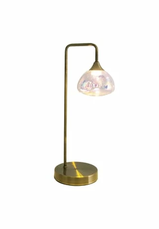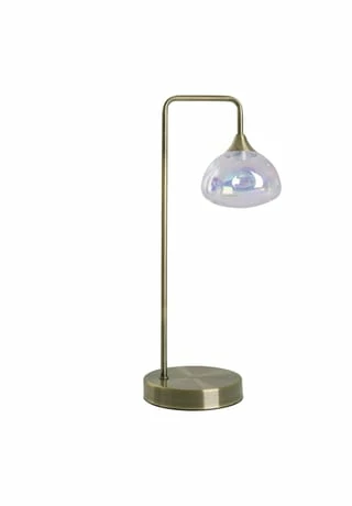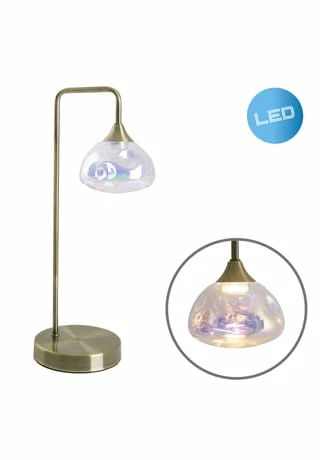 Die LED Tischleuchte bezaubert mit ihren irisierenden Gläsern und wird so zum perfekten Eyecatcher in Ihrem Zuhause.