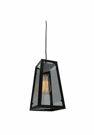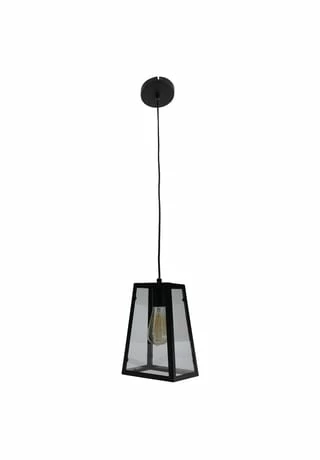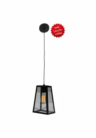 excl. LM 1xE27/max.60W IP 20 SK I Schirm b:18cm; t.14cm Höhe gesamt: 150cm Deckenplatte d: 12cm Material: Metall / Glas Farbe: schwarz