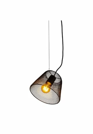 Durch den Lampenschirm aus Metallgeflecht entsteht ein faszinierendes Zusammenspiel aus Licht und Schatten.