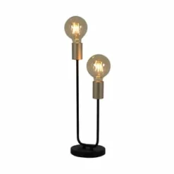 2x E27 max. je 40W Exkl. Leuchtmittel 220 – 240 V~ / 50 Hz IP20 / SKII Maße ca.: H: 45,3 cm Fuß ca.: H: 2,3 cm / D: 14 cm Zuleitung ca.: 1,55 m – schwarz Inkl. Kippschalter Material: Metall (Eisen) / Kunststoff Farbe: Gestell schwarz / Fassung gold