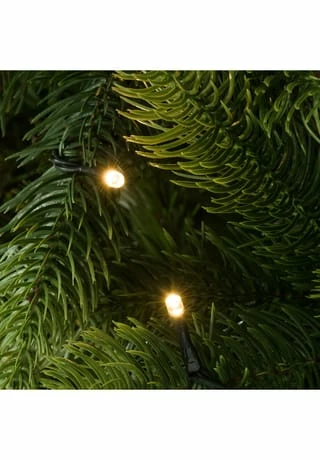 Der künstliche Christbaum sieht täuschend echt aus und ist mit einer LED-Lichterkette beleuchtet