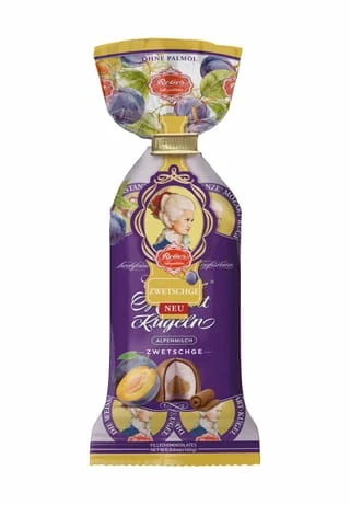 mit Haselnuss-Nougat-Marzipanfüllung (67%) mit Zwetschge