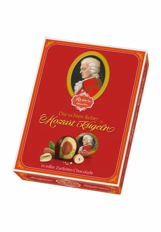 Pralinen aus Zartbitterschokolade (17 %) und Alpenmilchschokolade (18 %) mit einer Haselnuss-Nougat- (10 %) Pistazienmarzipan- (30 %) und Marzipanfüllung (25%)